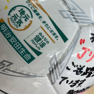 このたび、 明治安田生命相互保険会社のスタッフの方々が、 選手たちへの激励メッセージボールをプレゼントしてくださいました。